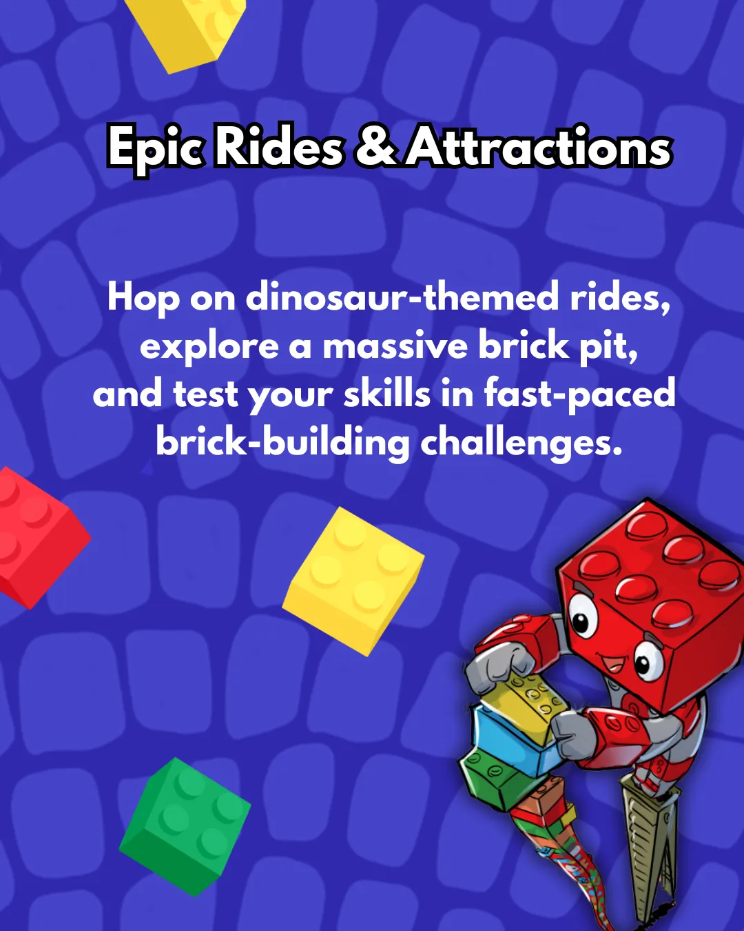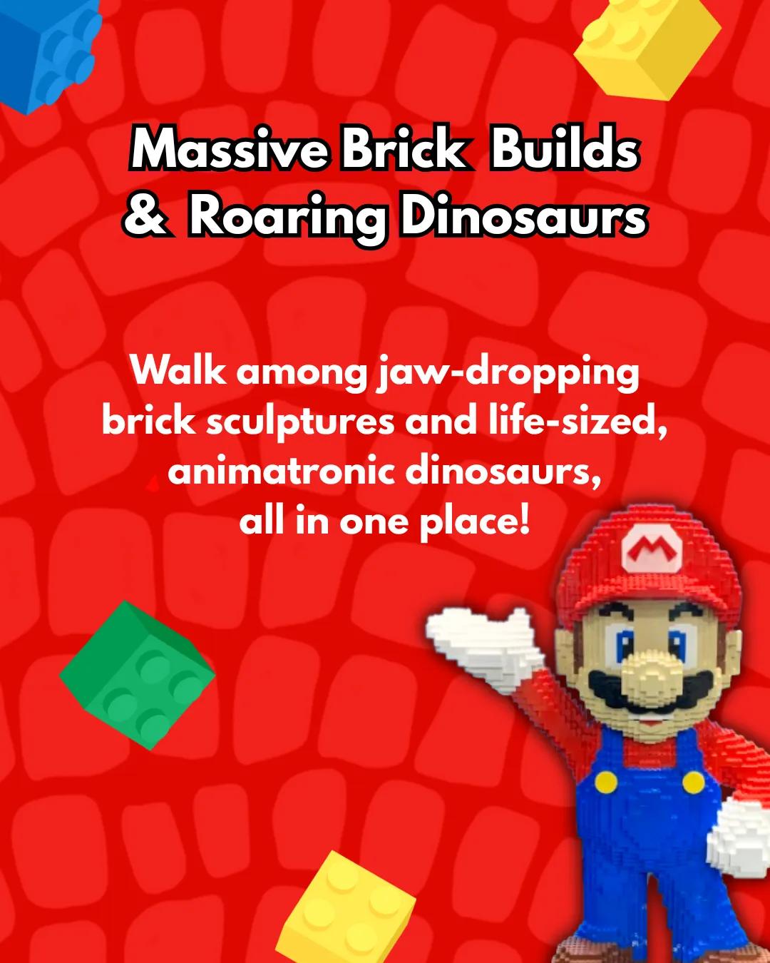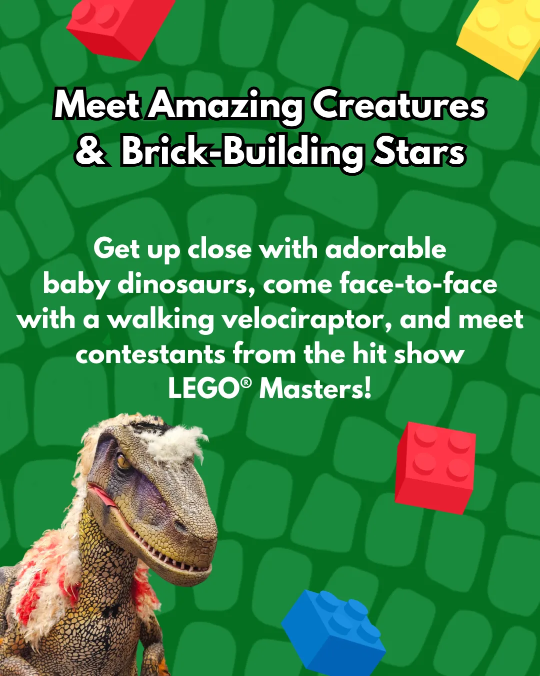Experience the best of both worlds as Brick Fest Live and Jurassic Quest come together for the first time! It’s a one-of-a-kind event packed with interactive fun, imagination, and prehistoric excitement!